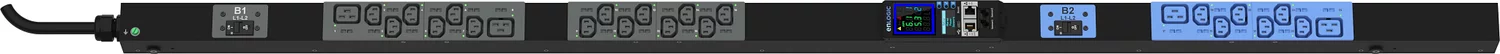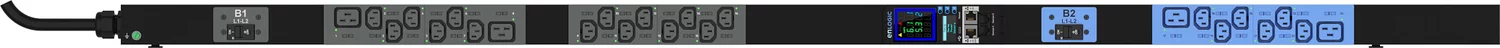 Model EN6324 wyposażony jest w dwa niezależne zabezpieczenia nadprądowe (2 CB), które chronią obwody przed przeciążeniem i zwarciem. Urządzenie udostępnia 24 gniazda wyjściowe – 20 × IEC C13 oraz 4 × IEC C19, umożliwiające podłączanie serwerów, przełączników, routerów oraz urządzeń o wyższym poborze mocy.