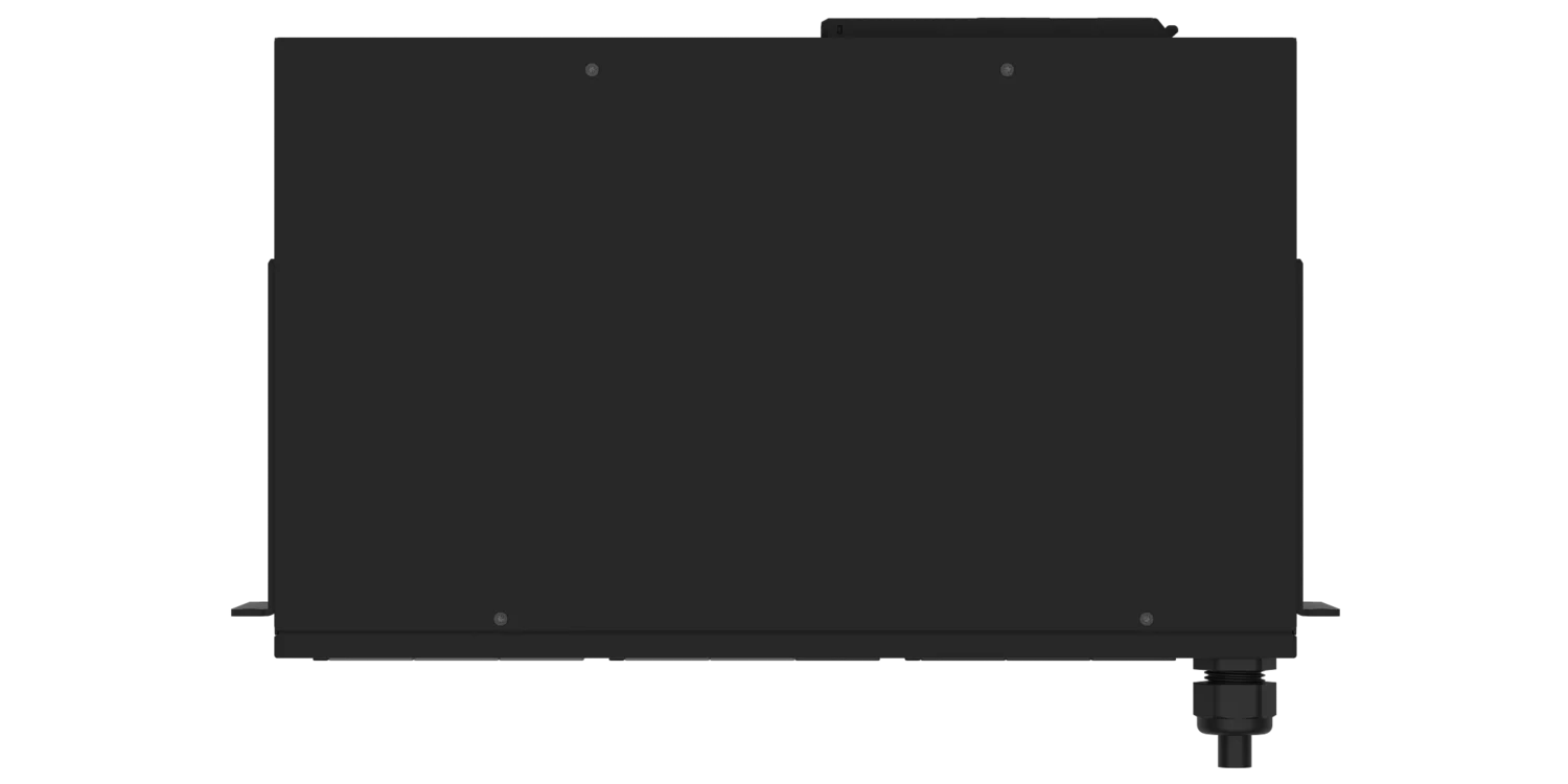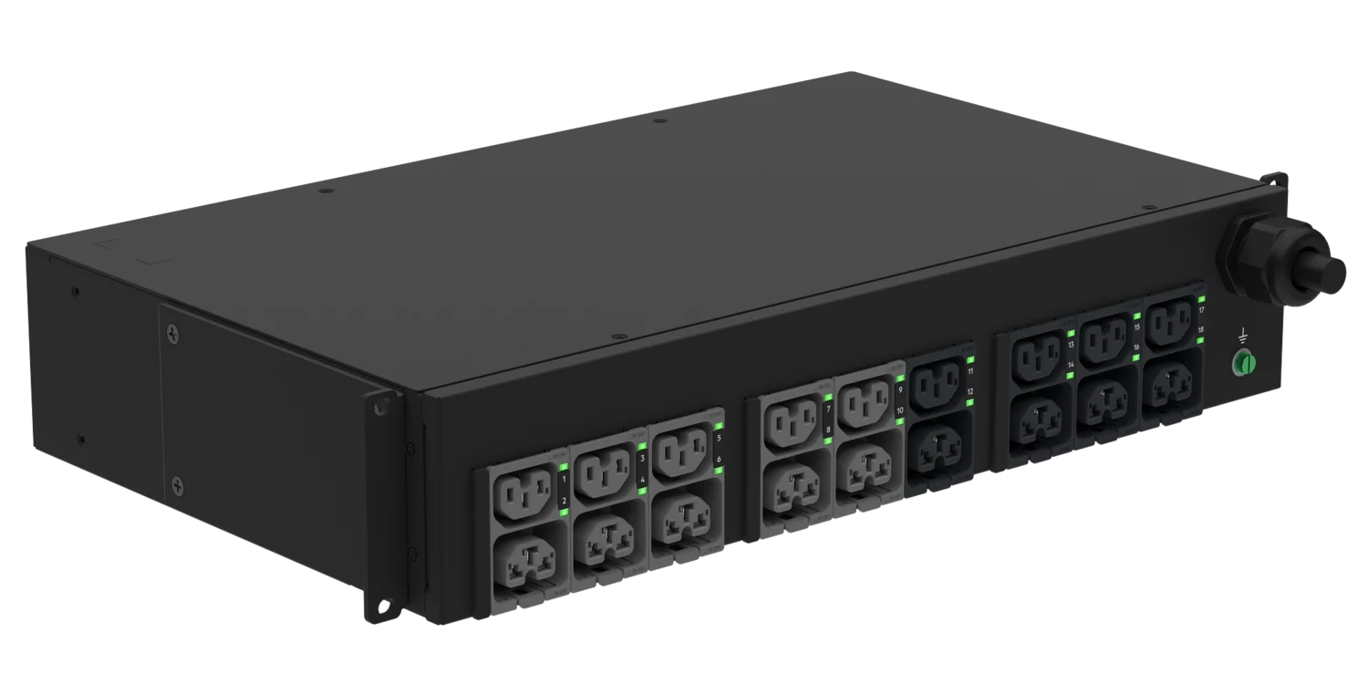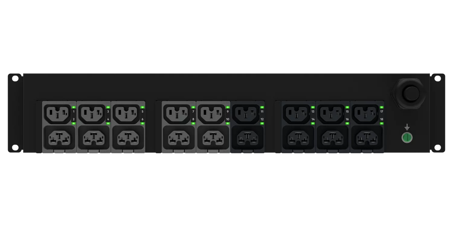 Konstrukcja 2U umożliwia poziomy montaż w standardowej szafie rack 19″, oferując kompaktowe i wygodne rozwiązanie zasilające z łatwym dostępem do złączy.