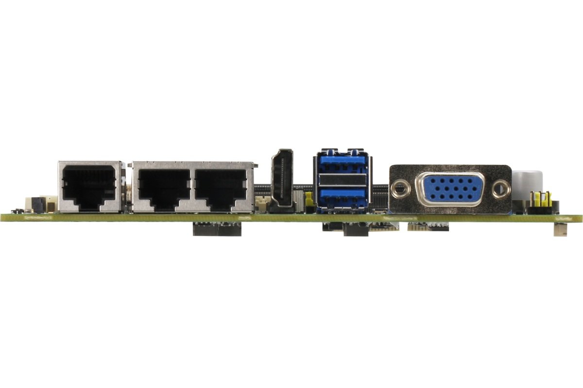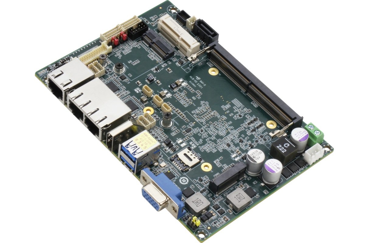 Płyta oferuje szerokie możliwości komunikacyjne, w tym 3 × 2.5GbE, 2 × USB 3.2 Gen 2, 2 × RS-232/422/485 oraz 2 × RS-232, a także interfejsy wideo HDMI 1.4, VGA i eDP do integracji z różnymi typami wyświetlaczy. Do dyspozycji są również SATA 6Gb/s, 8-bit GPIO, a także złącza rozszerzeń Mini PCIe, M.2 2230 E-Key i M.2 3052 B-Key.