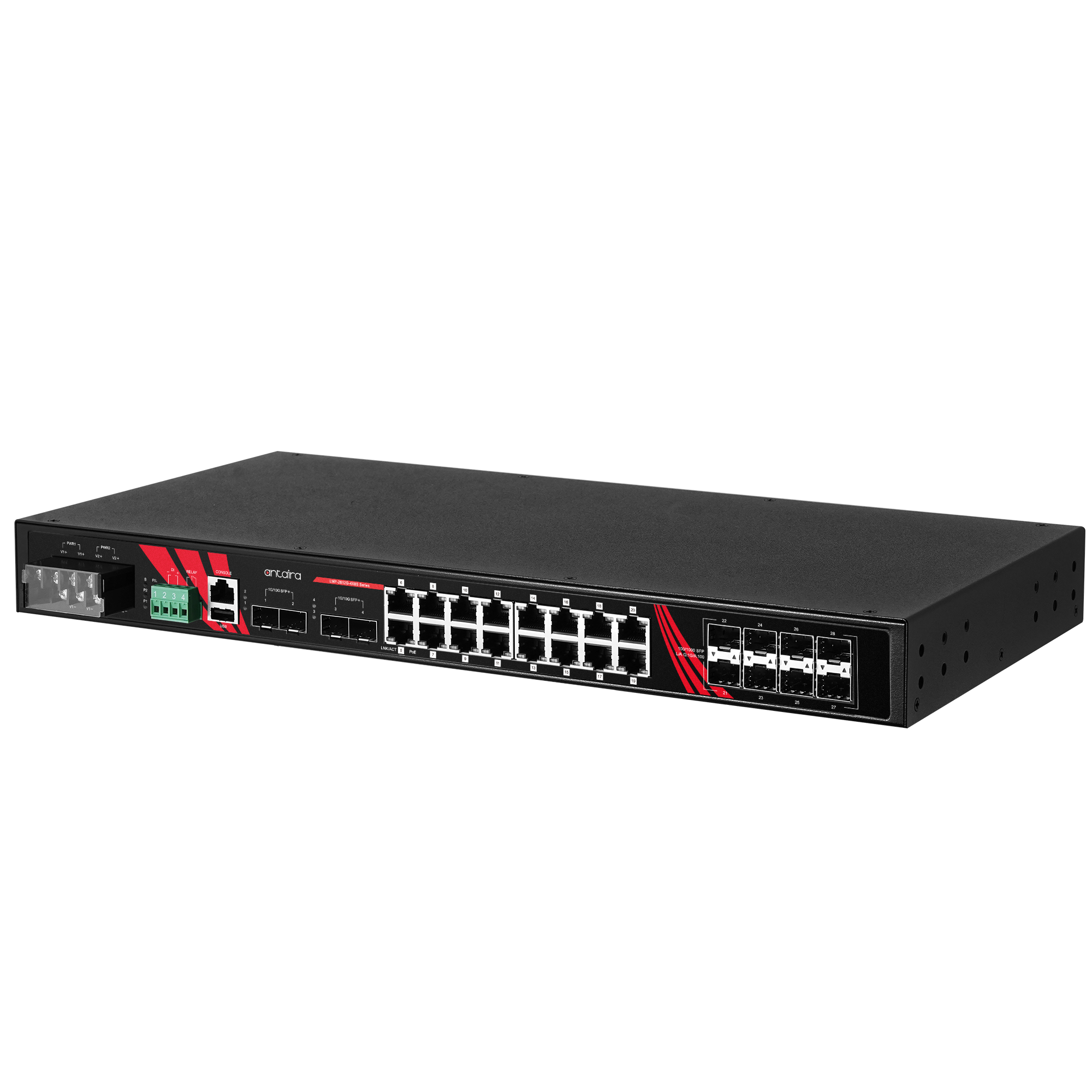 LMP-2812G-4X8S-24 to 28-portowy przemysłowy zarządzalny switch Gigabit Ethernet PoE+, wyposażony w 16 × 10/100/1000T (30 W/port), 4 × gniazda SFP+ 1G/2.5G/10G oraz 8 × portów SFP 100/1000. Dzięki temu produkt idealnie nadaje się do aplikacji wymagających wysokiej gęstości portów, szerokiego pasma transmisyjnego oraz komunikacji na duże odległości.