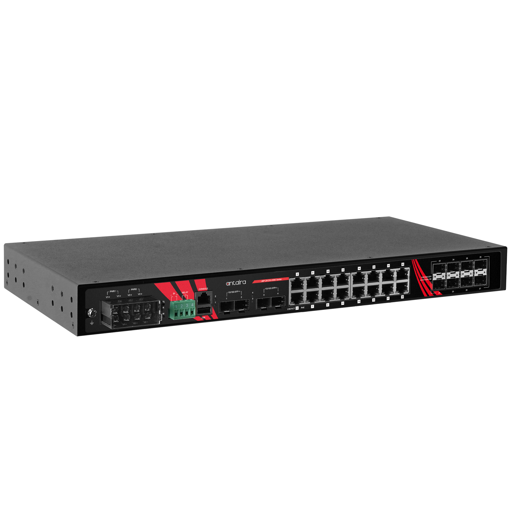 - Obsługa 16 × 10/100/1000BASE-T Gigabit – porty PoE zgodne z IEEE 802.3af/at (30 W/port)