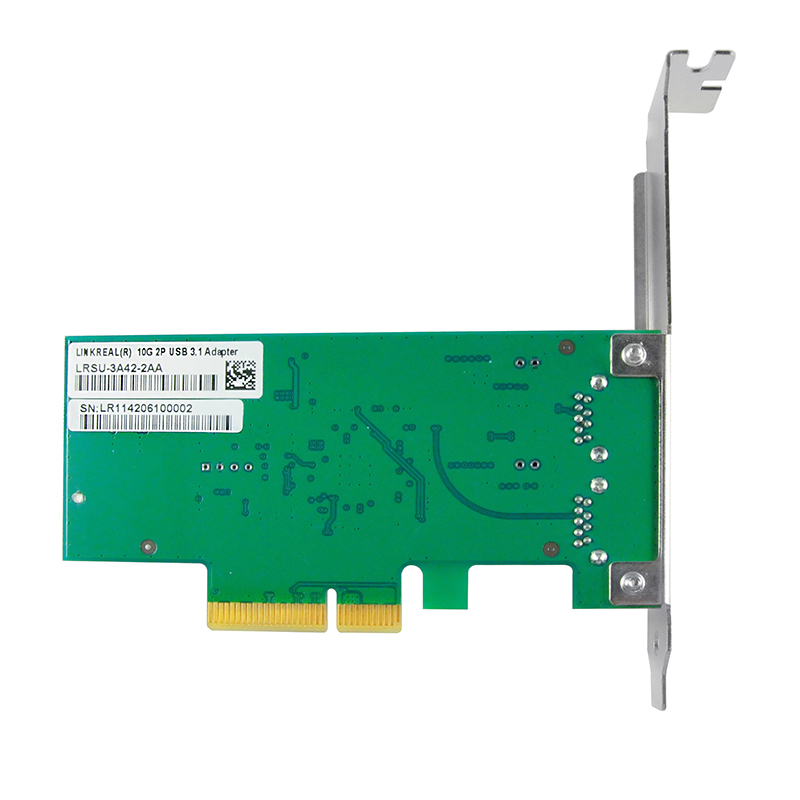 Obsługa szybkości transmisji danych USB 10G / 5G / 480M/ 12M / 12M / 1,5 m BPS. Każdy port USB zapewnia maksymalny prąd wyjściowy + 5VDC / 900 ma. Każdy port USB ma wbudowaną ochronę prądu. LRSU9A42-2A ma specyfikację PCIe x4 (może być używany tylko w 4X powyżej gniazda pci-e, kompatybilny z PCIe x16).