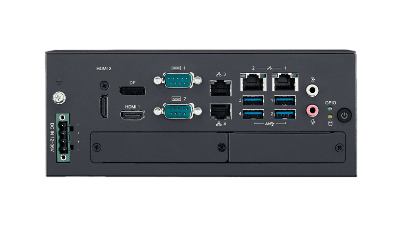 Komputer przemysłowy, Core Ultra Soc., DDR5, 2HDMI, DP, 4LAN, 2COM, 4USB, mPCIe, M.2, DC-in 12V~36V, -20°C~+50°C
